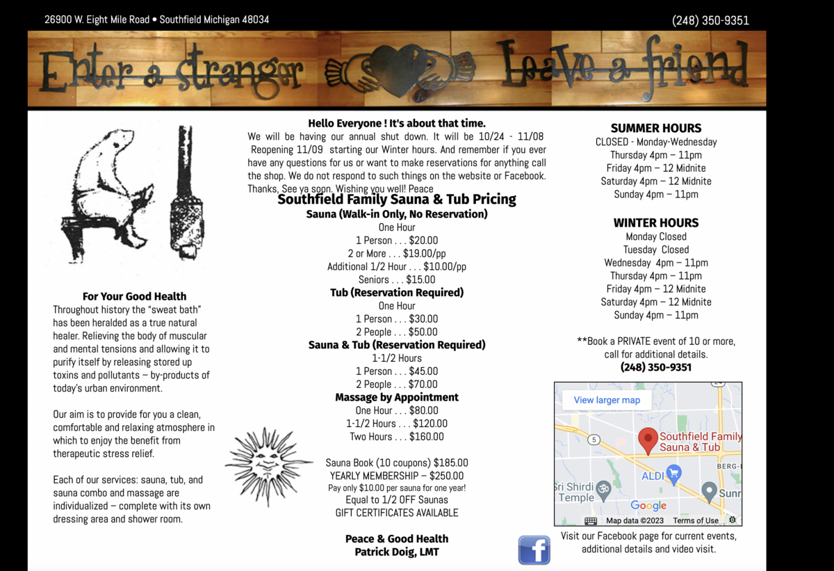 以前アメリカ各都市のサウナをGoogle mapで調べていた時、デトロイトのサウナが異彩を放っていることに気づきました。こちらがそのHP。