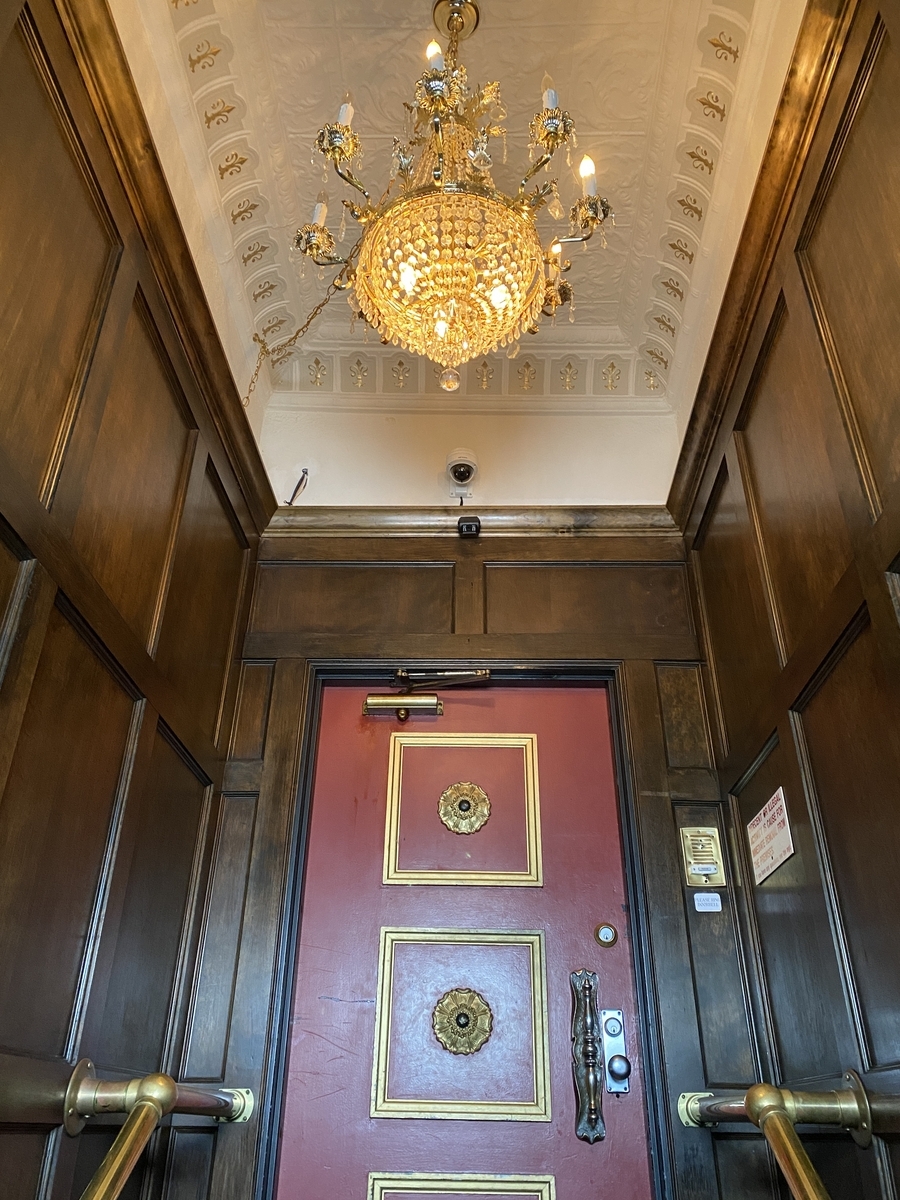 こちらは更に古く、1930年にオープン。1918年に、ロシア系ユダヤ人のコミュニティセンターとして建てられたビルを使っているとのことでした。店名がわかるものが見当たらないグレーの無骨なビル。中に入るにも鍵がかかっており、ベルを鳴らす必要がありました。東欧には行ったこと無いですが、世界史で見た神聖ローマ帝国やビザンツ帝国から想起する、少しDarkな、独特な雰囲気が建物内に漂います。